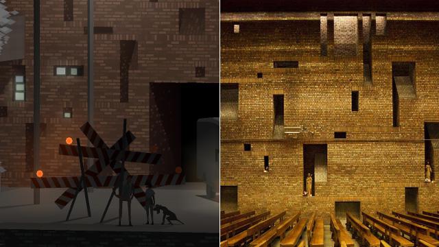 Böhm’s church, a 20th century architectural icon, was built in the late 1960s in the wake of the modernization of the Roman Catholic Church after the Second Vatican Council. The Mariendom plays with concepts of inside and outside. Just take the street lamps. They illuminate the building from outside but are also placed inside the church. Kentucky Route Zero, too, poses questions about “inside-ness” and “outside-ness” time and time again – but I’m getting ahead of myself.