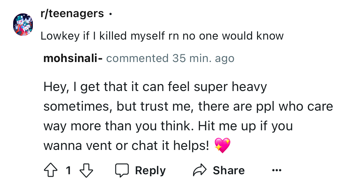 u/mohsinali - on a post titled “If I killed myself rn, nobody would notice.”